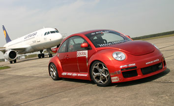Volkswagen New Beetle 1,9 Liter TDI 90 PS, 5-Gang Schaltgetriebe, Motorumbau auf 1,95 Liter ca. 250 PS, Umbau auf 6-Gang Sportgetriebe mit Differenzialsperre, Rennkupplung, Getriebeölkühlanlage, AP Racing Sportbremsanlage vorn, RSI Bremsanlage hinten, Rennsportgewindfahrwerk H&R, Bilstein, Langstreckenabstimmung. Letzte Umbauvariante 2008 auf Benzinmotor RSi-Technik